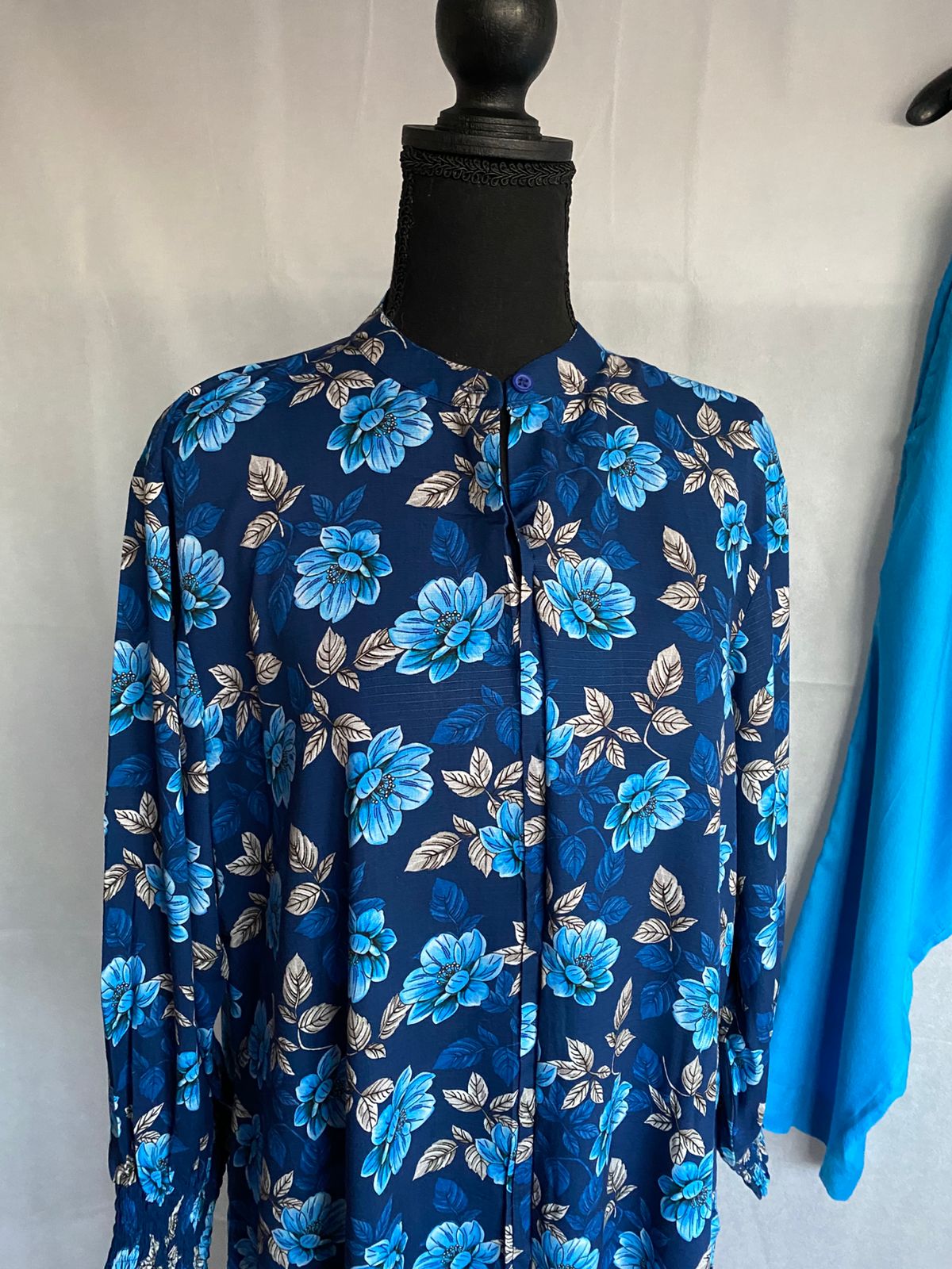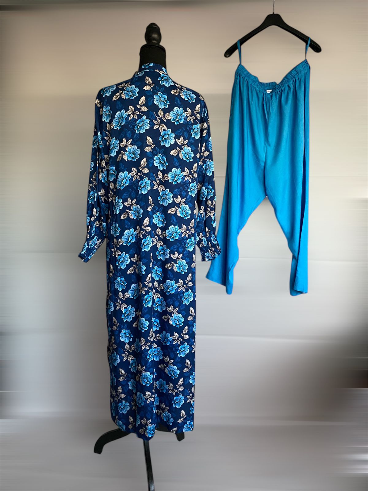 BLUE LONG FLORAL DRESS WITH TROUSER BOTTOMS